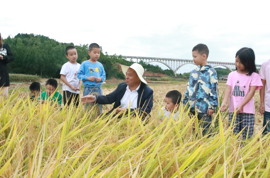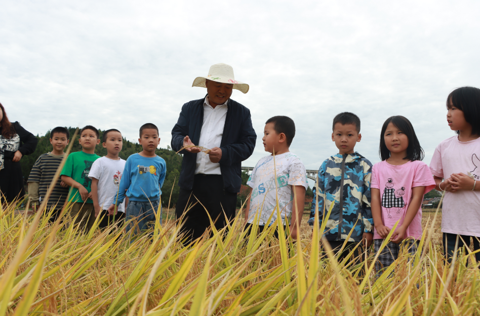 把课堂搬到田间地头,当地村民和老师带领着孩子们走进稻田,闻着阵阵稻香讲述起水稻的生长过程,也让孩子们体验到"谁知盘中餐,粒粒皆辛苦"的艰辛。