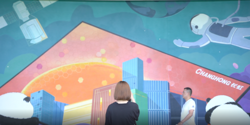 2022 年,长虹已完成铁牛广场超长艺术景观走廊涂鸦的第一期,“科技长虹,产业报国”的主题强调了长虹作为科技创新引领者的地位,也展现了长虹积极参与国家产业发展的责任感。这一景观在完成亮相后,立刻受到了广大市民的喜爱,成为了市民争相前来欣赏和拍照打卡的热门景点,更是一个让人们凝视、留影、思考的城市亮点。