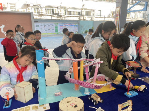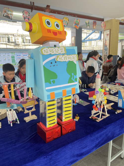 科创节活动内容丰富,形式多样,涵盖了科学实验展示、创意作品展览、机器人编程竞赛、科技小制作等多个环节。学生们通过动手实践,将课堂上学到的科学知识转化为一个个充满创意的作品。五年级学生展示了自制的“智能垃圾分类机器人”,六年级学生则通过创新设计设计了一款“载人航天模型”,充分体现了学生科技与创新能力的紧密结合。